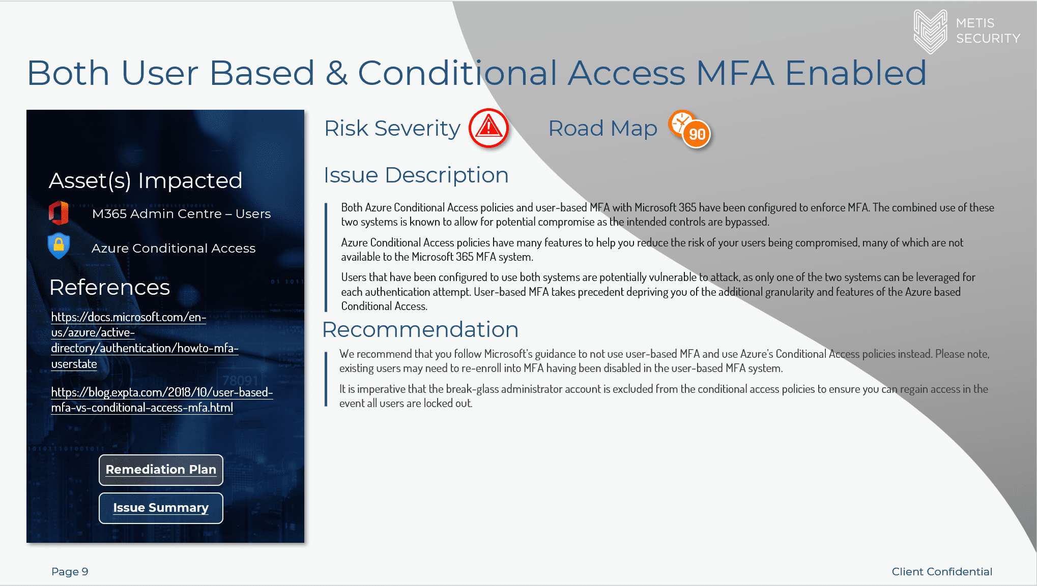 Our recommendation on a remediation timeframe – 30 days / 90 days / beyond – this is based on not just the severity of the threat, but also factors in the planning and implementation effort.